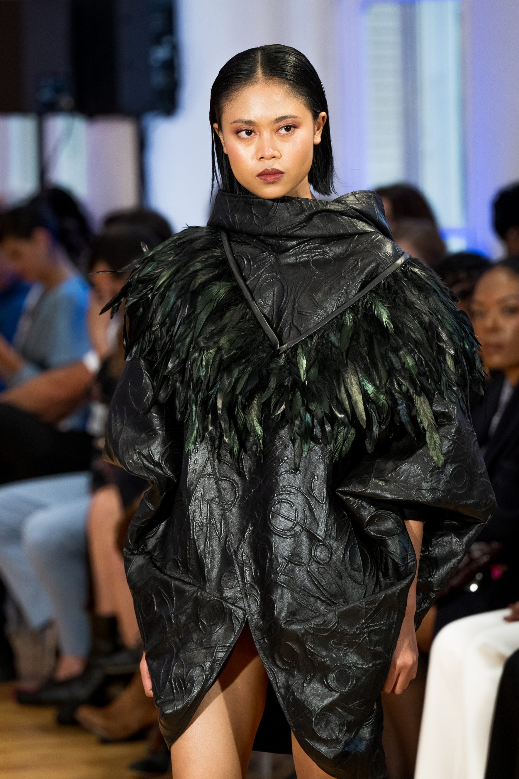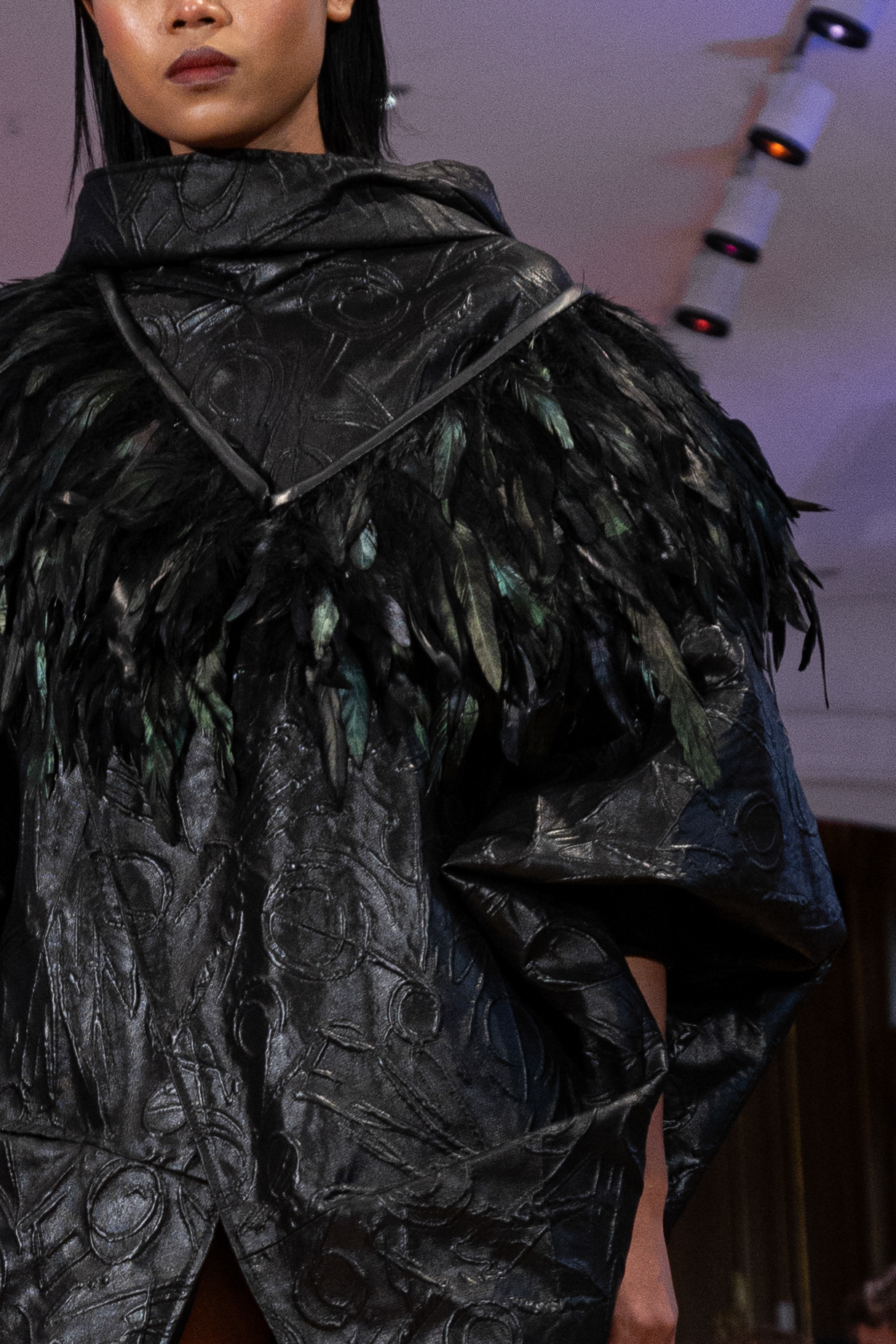 Black hooded raincoat with original design and large front pockets. Cotton lining ensures comfort. Key piece from "The Poison Garden" collection.