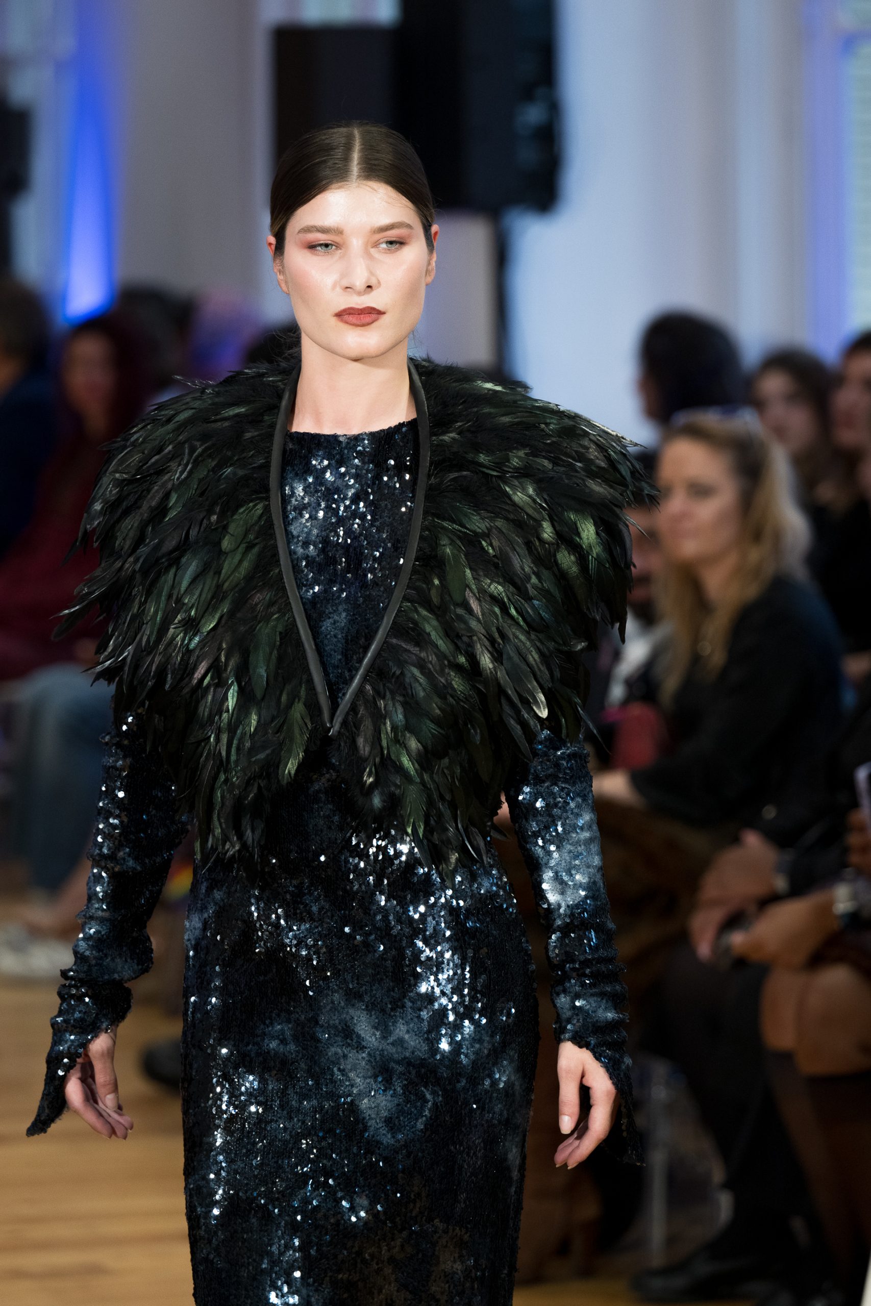 Collar in green and black rooster and ostrich feathers. Handcrafted, lightweight, and elegant. From "The Poison Garden" collection by GAVEL PARIS.