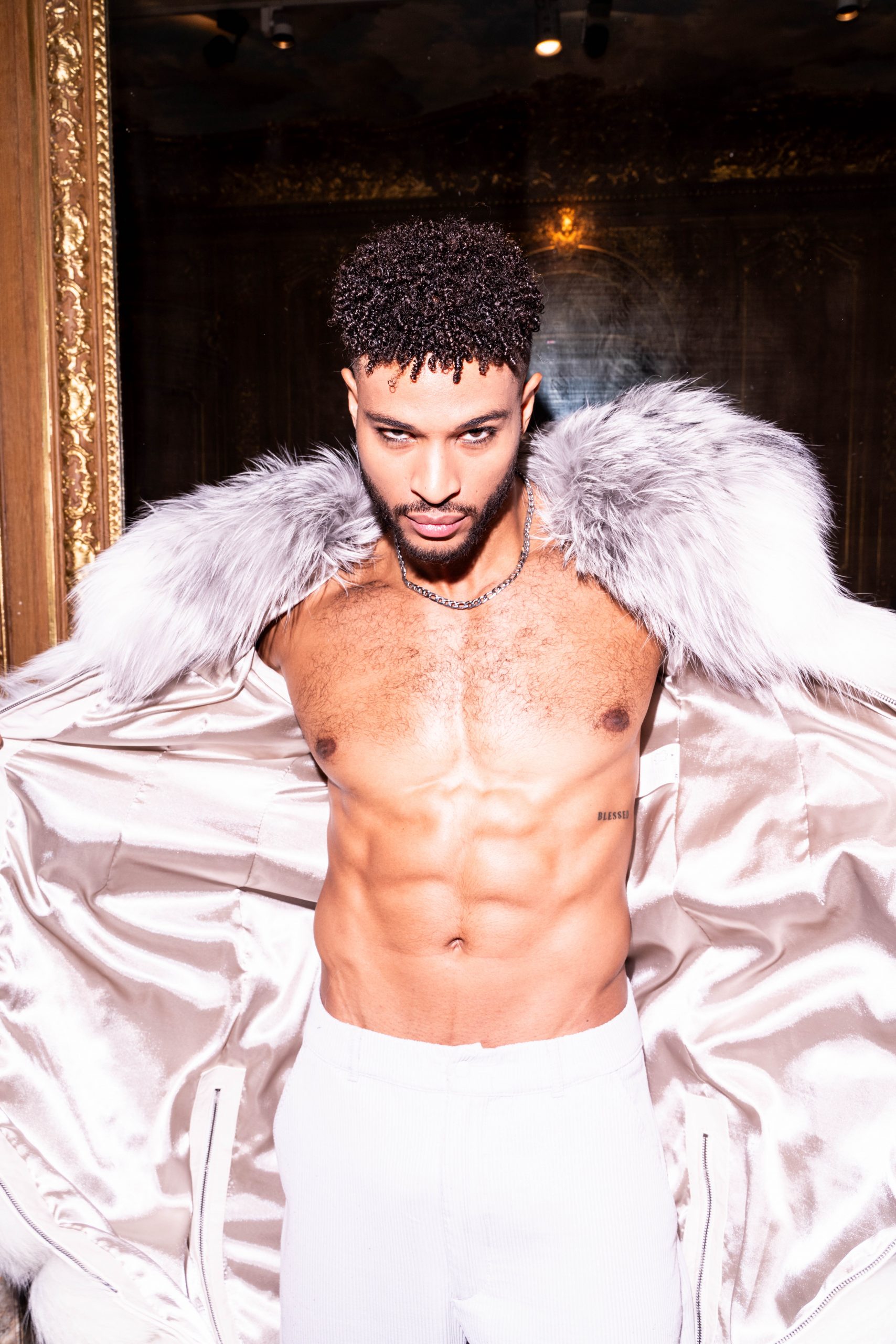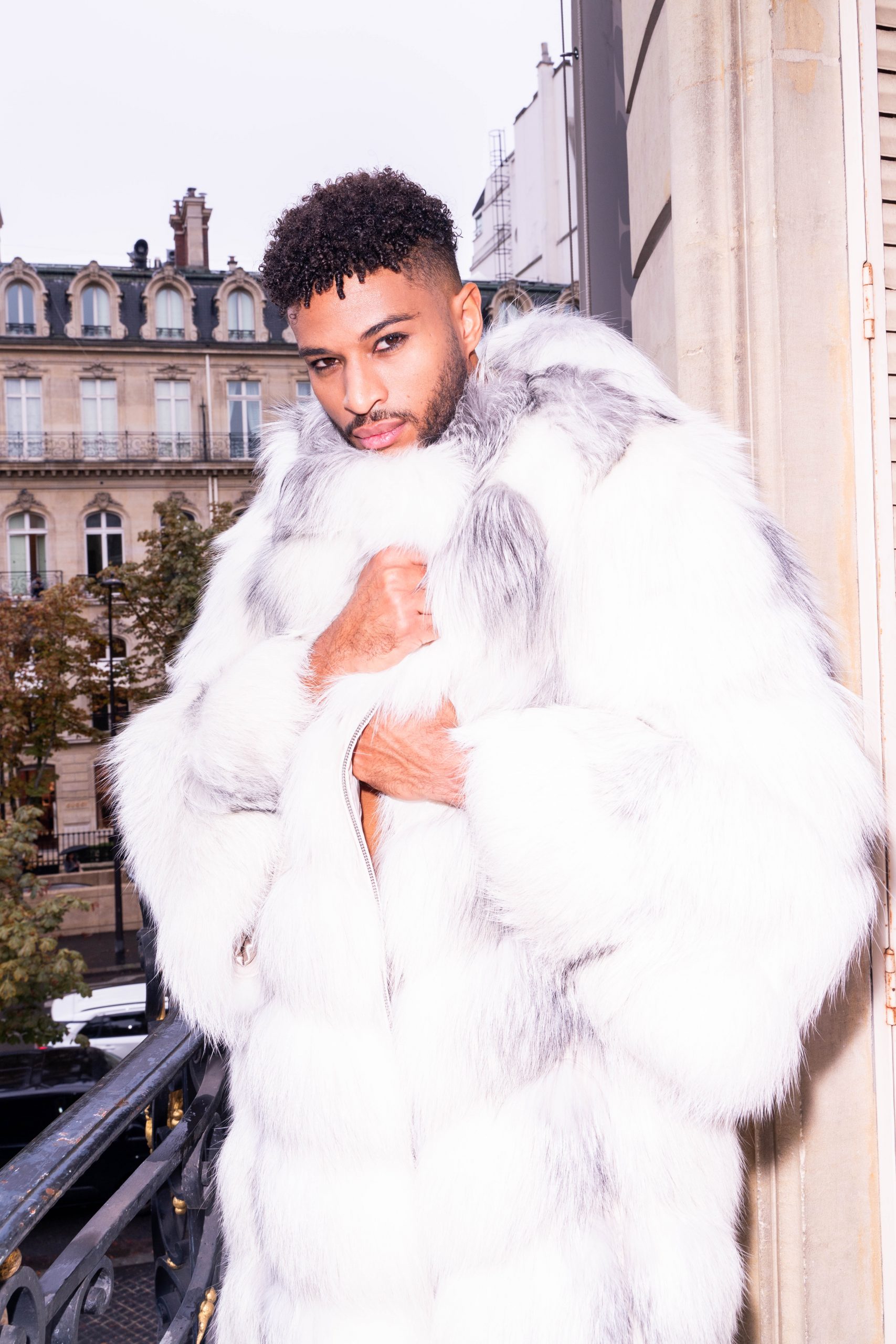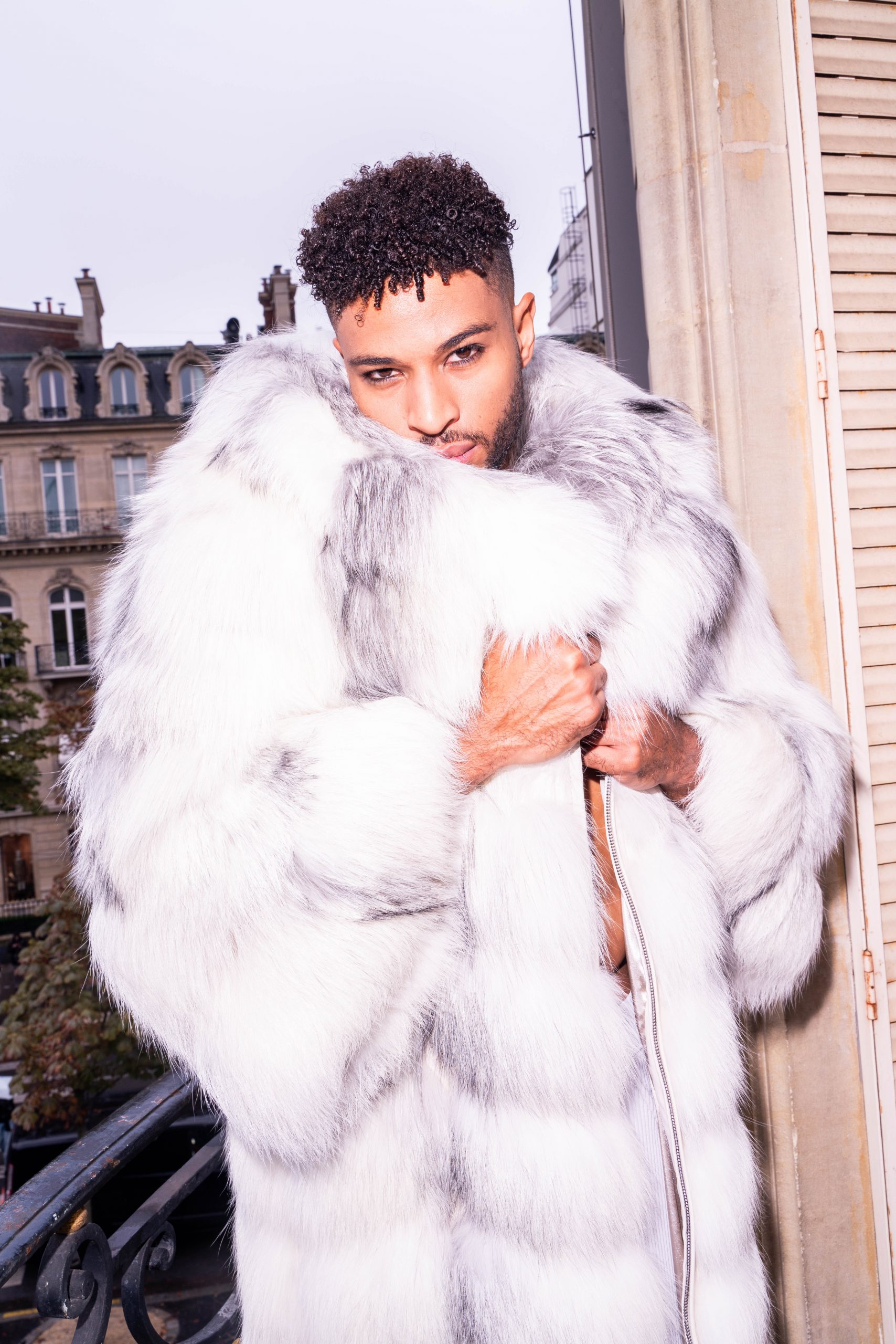 Dex arctic fox fur coat with hood and removable sleeves. A luxurious and versatile piece from "The Poison Garden" collection for men.